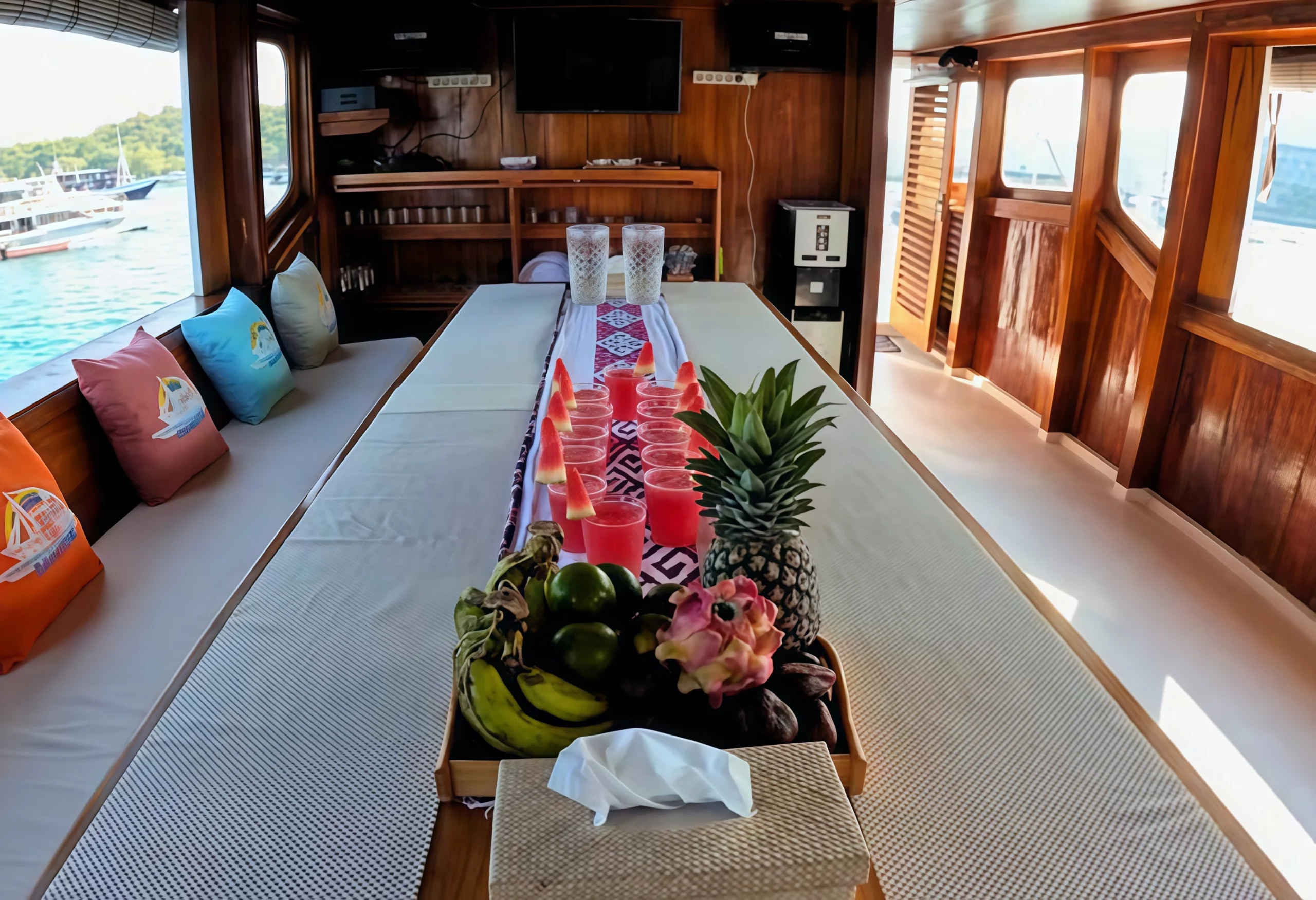 The boat offers exciting voyages with all comfortable facilities with the spacious open-air area, from the rooms with ocean views, sun-deck, rooftop chill out area, and all parts of the boat which are designed perfectly to discover the amazing islands of Komodo National Park.