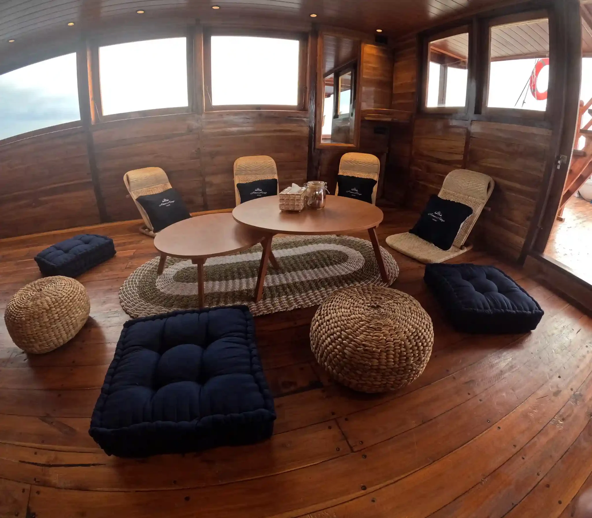 The Aimar Always Boat Charter offers a range of premium facilities designed for comfort and relaxation while exploring Komodo National Park. Enjoy the spacious bar area for refreshing drinks, an inviting indoor dining area perfect for meals with a view, and a cozy indoor lounge area to unwind. For a restful night, the sea view cabin provides stunning views, while the air conditioning ensures a cool and comfortable atmosphere throughout your trip. With these top-notch facilities, Aimar Always Boat Charter guarantees an unforgettable experience in Komodo National Park.