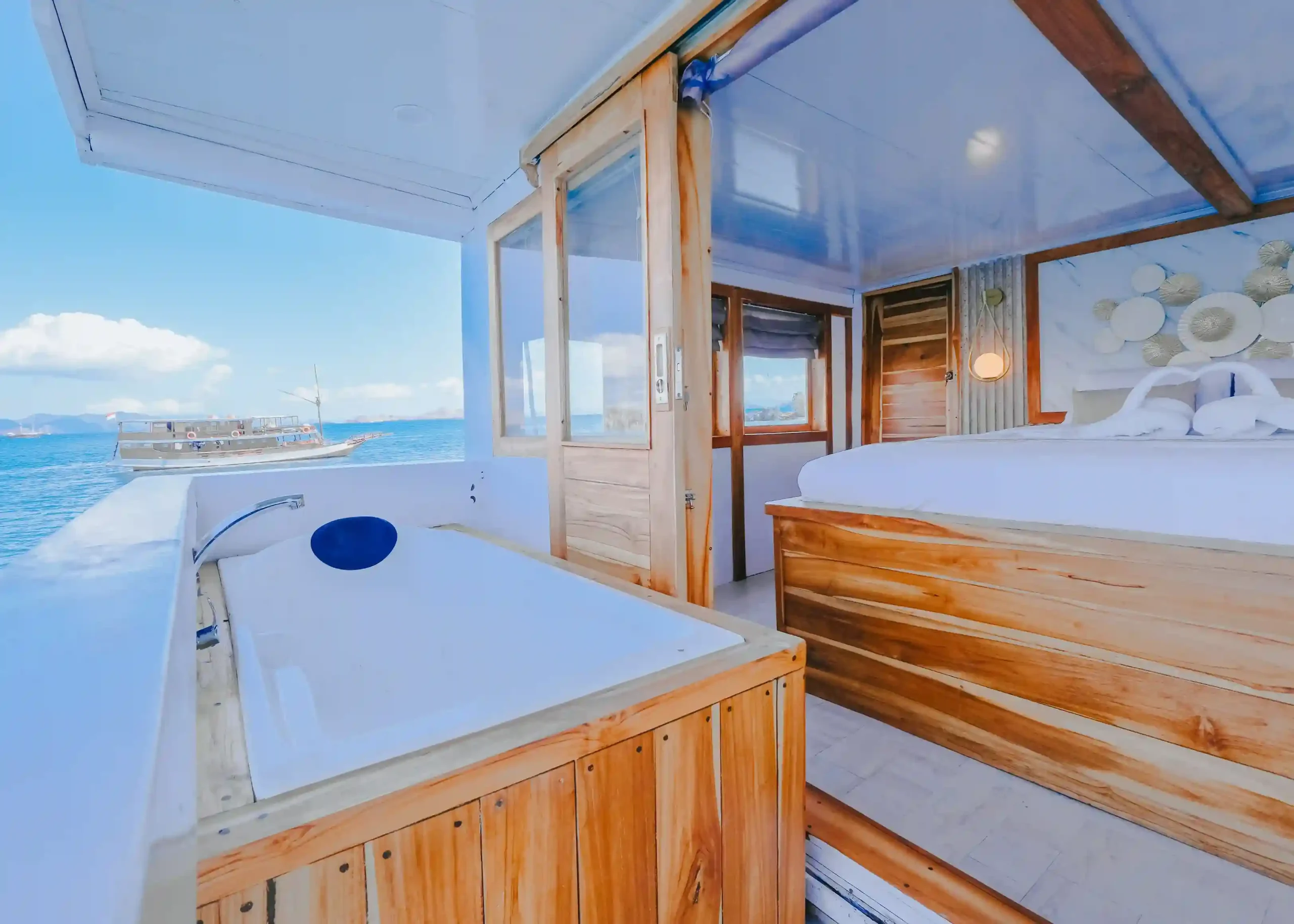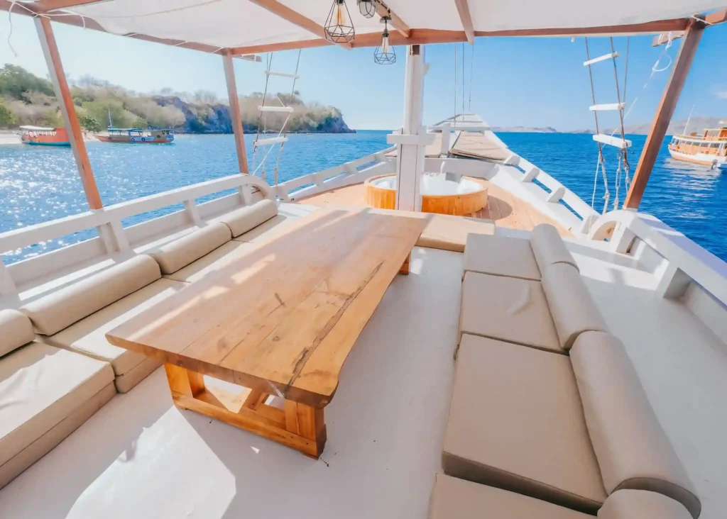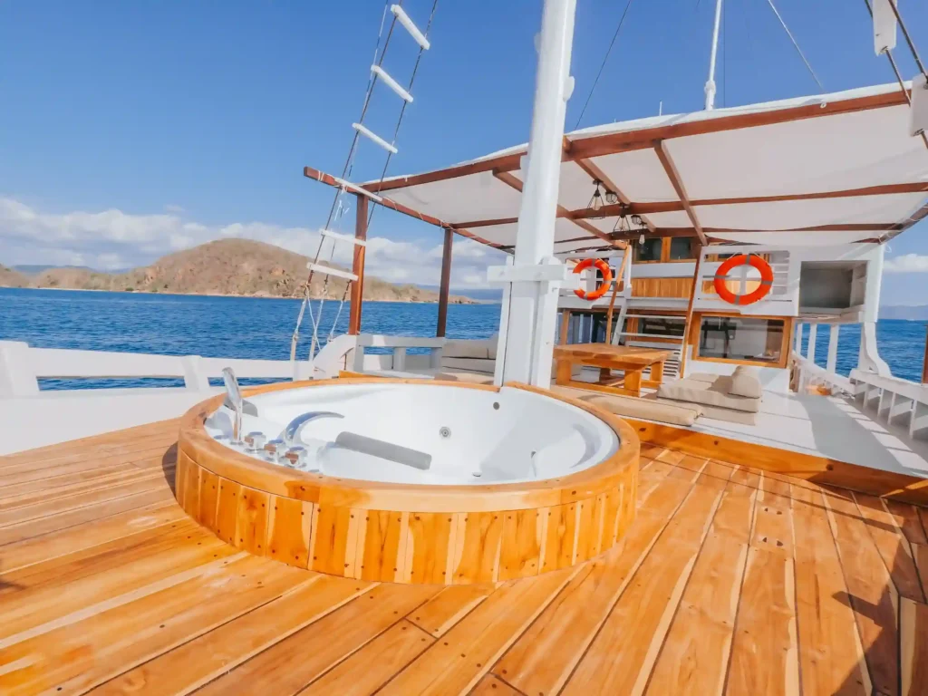 Bombana 2 Phinisi offers top-quality life vests and snorkeling goggles for safe underwater exploration. Enjoy onboard karaoke for fun, paddle through calm waters with canoes, or try paddleboarding. After a day of adventure, relax in the luxurious jacuzzi. Ready for a thrilling yacht cruise phinisi adventure? Book your spot on Bombana 2 Phinisi today!