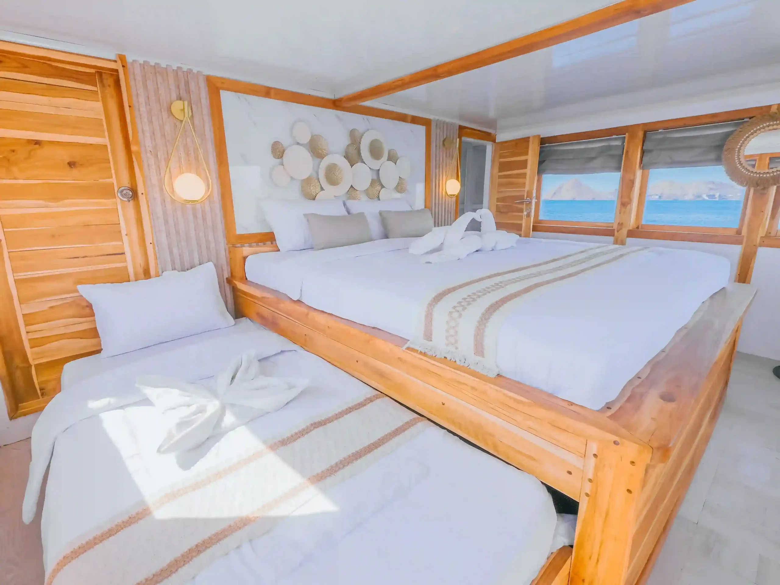 Set sail with Bombana 2 Phinisi, a stunning yacht cruise phinisi in Labuan Bajo. This 22.60-meter boat comfortably fits 15 guests in 5 cozy, air-conditioned cabins with private toilets. Enjoy exciting activities like canoeing and paddleboarding while exploring Komodo National Park. Every moment will be unforgettable. Book Bombana 2 Phinisi now and embark on an amazing adventure!