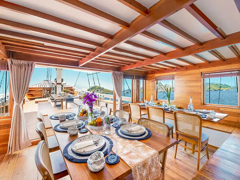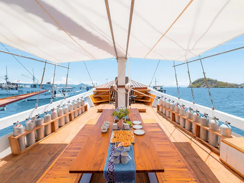The Catnazse Liveaboard offers exciting voyages with all comfortable facilities with the spacious open-air area, from the rooms with ocean views, sun-deck, rooftop chill out area, and all parts of the boat which are designed perfectly to discover the amazing islands of Komodo National Park.