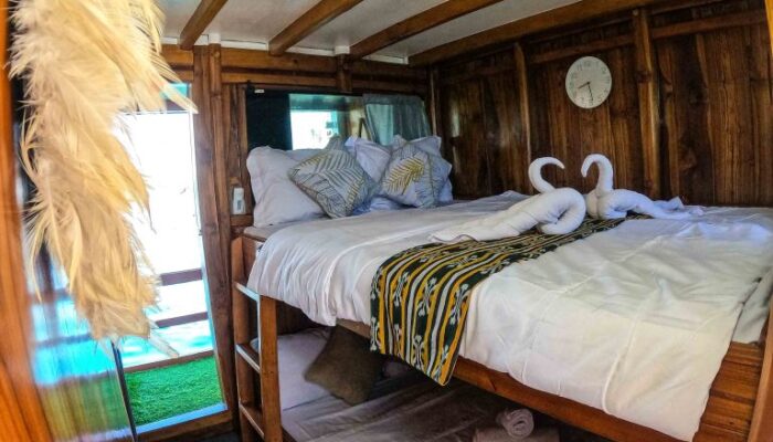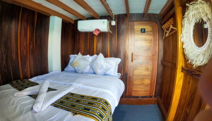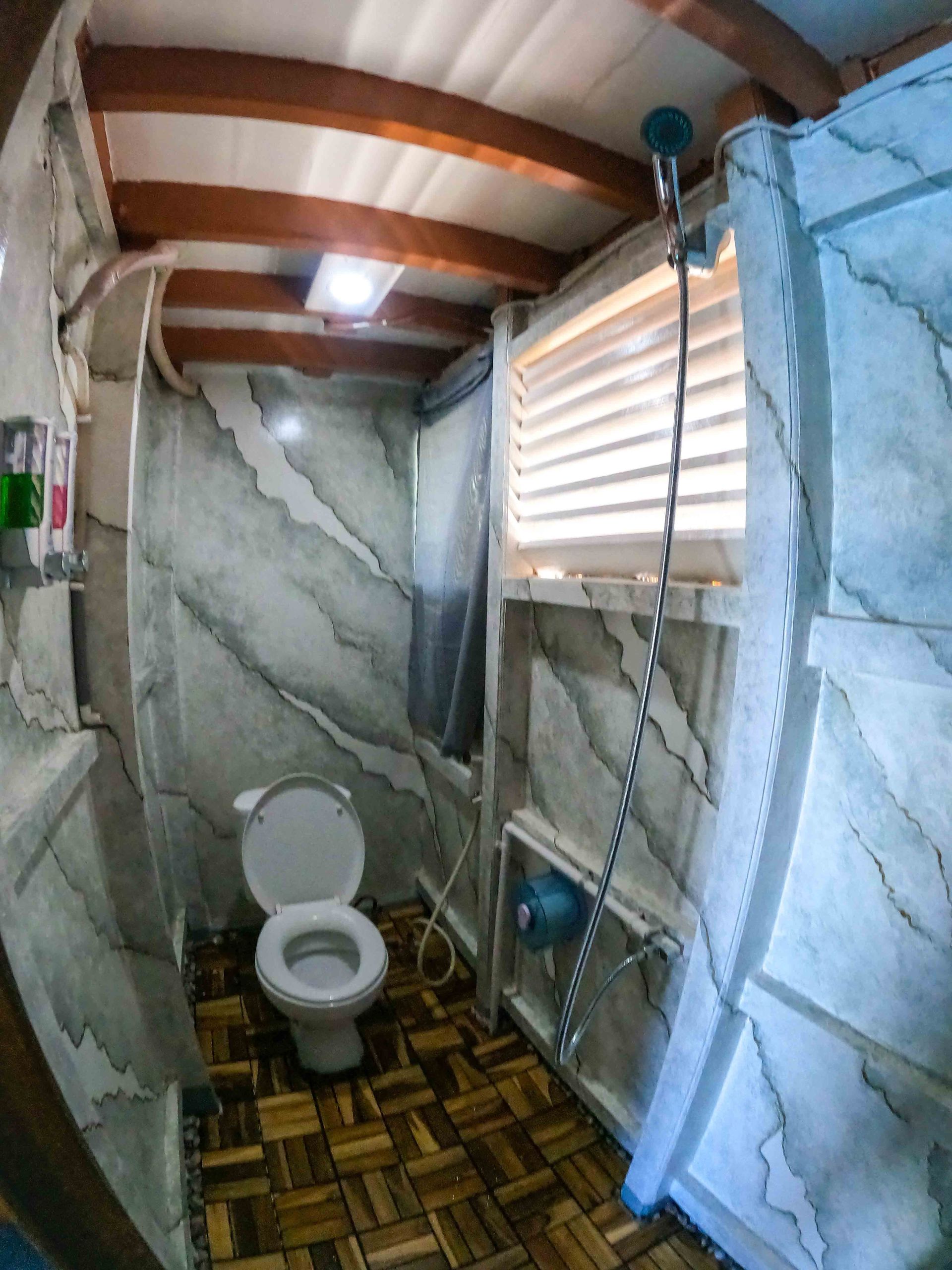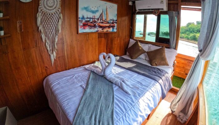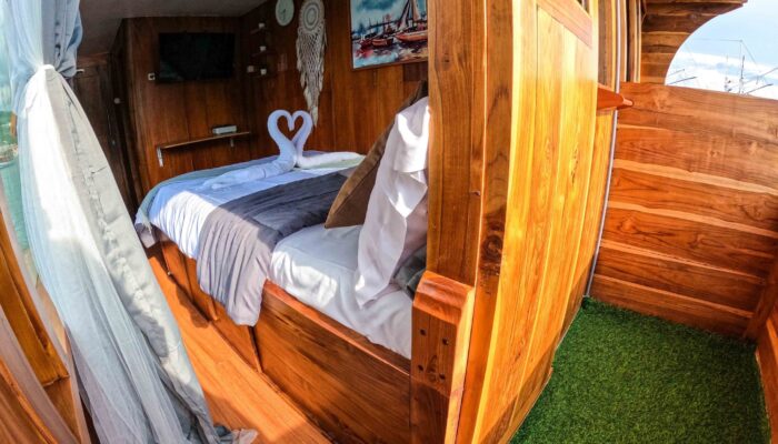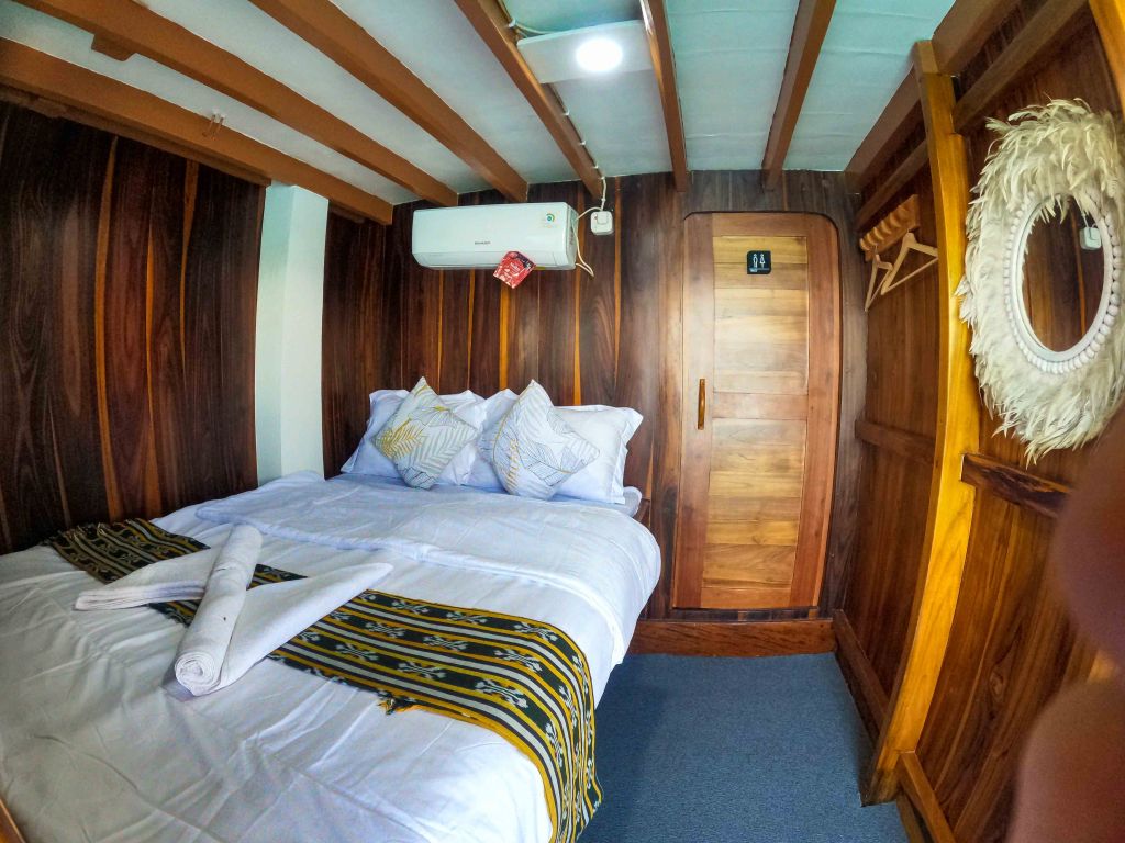 The boat is equipped with air conditioning, offering a comfortable and refreshing atmosphere throughout the journey. Guests can enjoy beautiful ocean views and relax on the private balcony. Each cabin features an ensuite bathroom with a shower and toilet, along with fresh towels, soap, and shampoo provided for convenience. An Android TV is also available for entertainment. Located on the upper deck, it provides an ideal setting for relaxation and enjoying the sea.