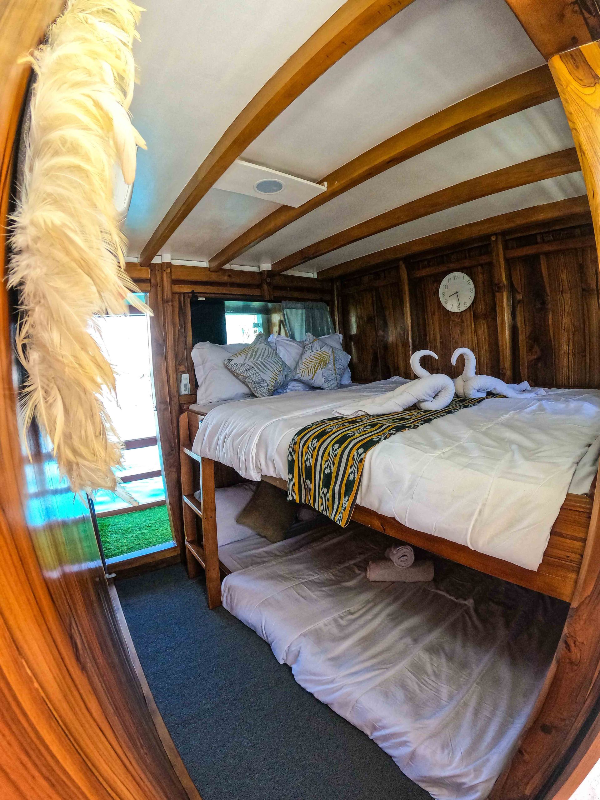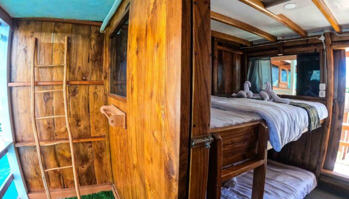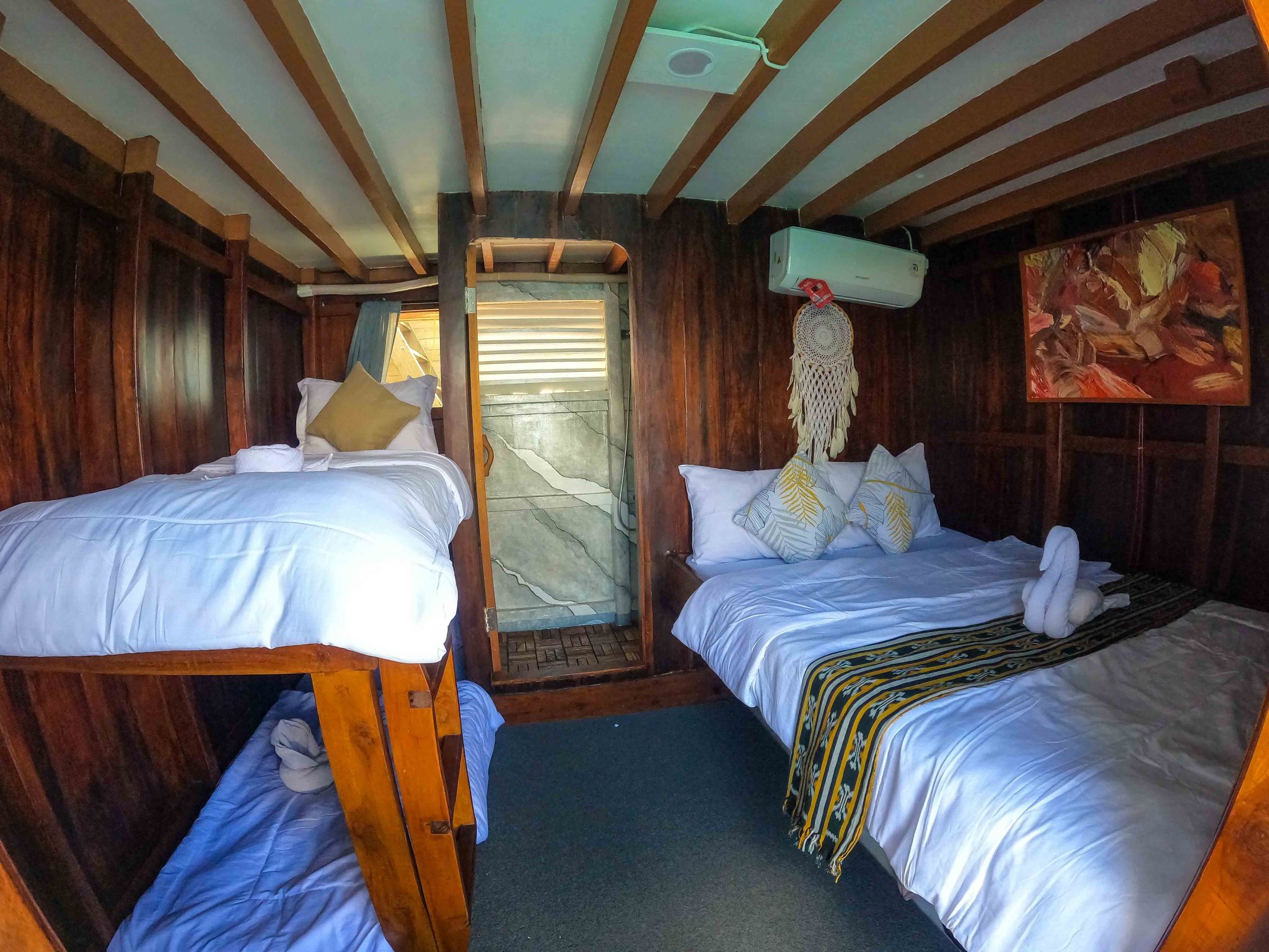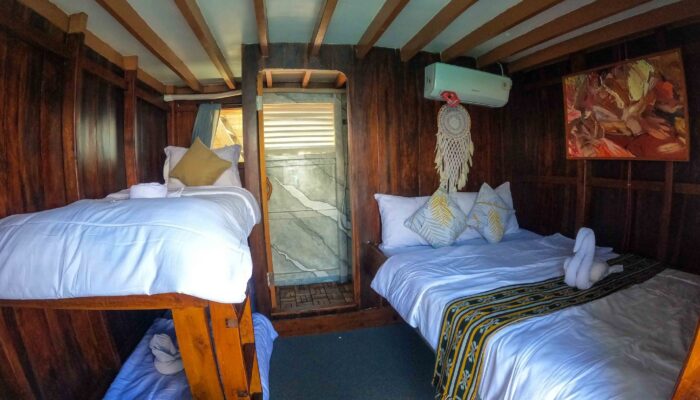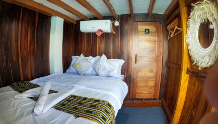 The boat is equipped with air conditioning, offering a comfortable and refreshing atmosphere throughout the journey. Guests can enjoy beautiful ocean views and relax on the private balcony. Each cabin features an ensuite bathroom with a shower and toilet, along with fresh towels, soap, and shampoo provided for convenience. An Android TV is also available for entertainment. Located on the upper deck, it provides an ideal setting for relaxation and enjoying the sea.