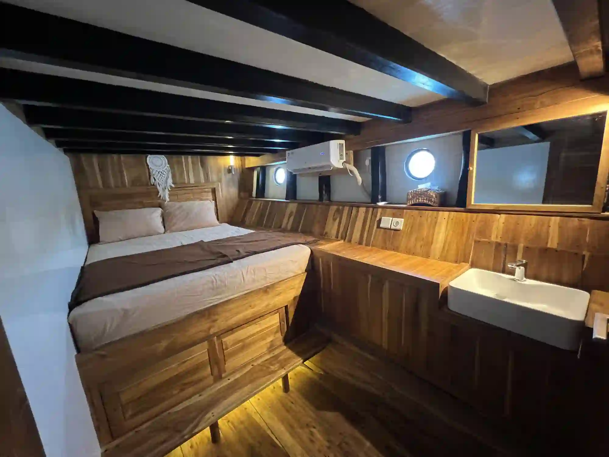 Fadaelo Phinisi offers an exceptional blend of comfort and luxury, perfect for an unforgettable journey through the Komodo archipelago. With 6 spacious cabins, 12 guests capacity, 6 bedrooms with private bathrooms providing a private retreat, an expansive sundeck for soaking in the sun or stargazing for ultimate relaxation amid stunning ocean views, every aspect of Fadaelo is designed for indulgence. Guests can savor freshly prepared meals in indoor or outdoor dining areas, unwind in the cozy chill space, or enjoy modern entertainment in the multimedia lounge. Every detail aboard Fadaelo is crafted to ensure relaxation, enjoyment, and memorable experiences, making it the perfect choice for exploring Komodo Islandon a luxurious boat charter