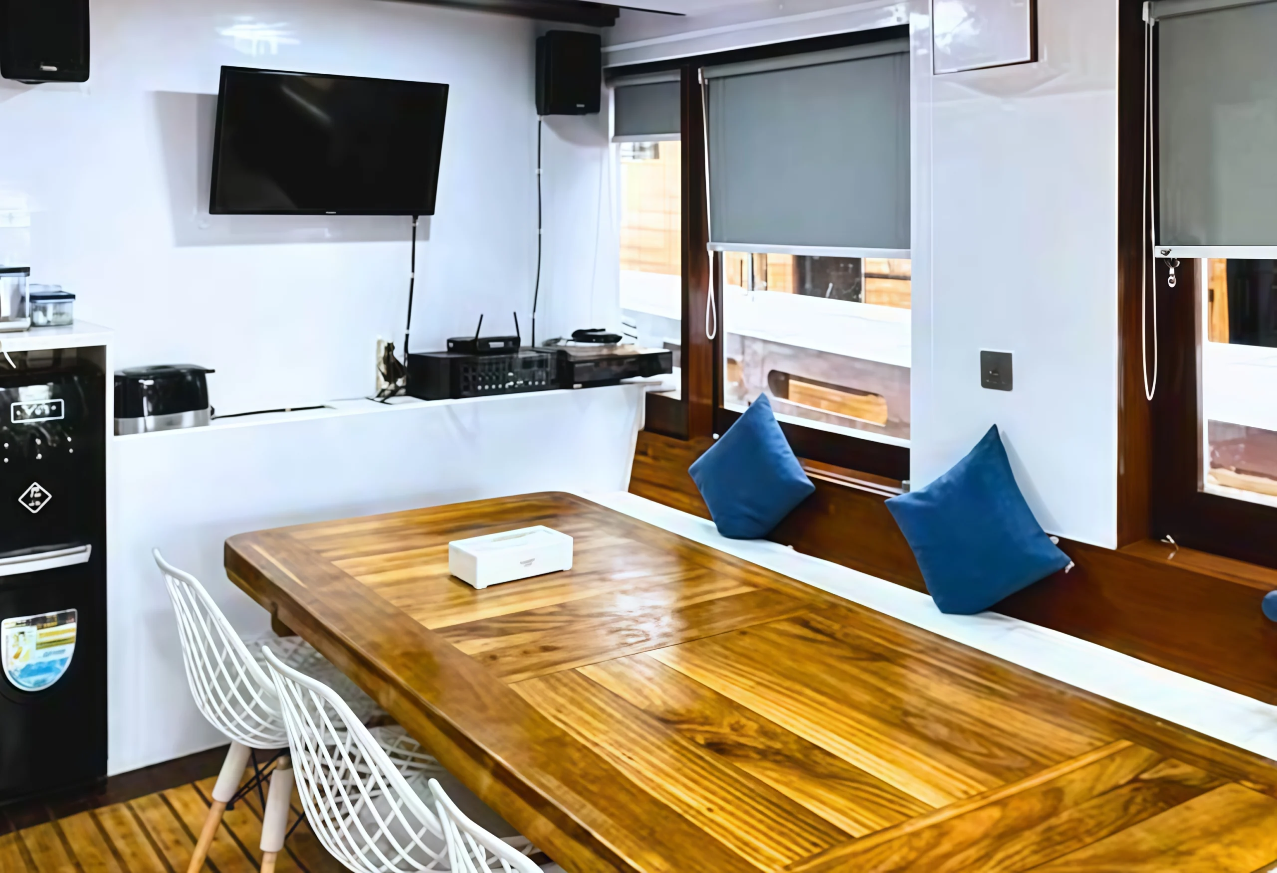 Set off on a one-of-a-kind journey with Invictus Boat Phinisi Cruise, taking you through the crystal-clear waters to Komodo Island and the wild beauty of Komodo National Park. Savor meals in the welcoming dining room, sing your heart out in karaoke sessions, or unwind on the sun deck with incredible views. Thoughtfully designed spaces and comfortable bathrooms make it easy to relax and feel at home while exploring some of nature’s finest destinations.