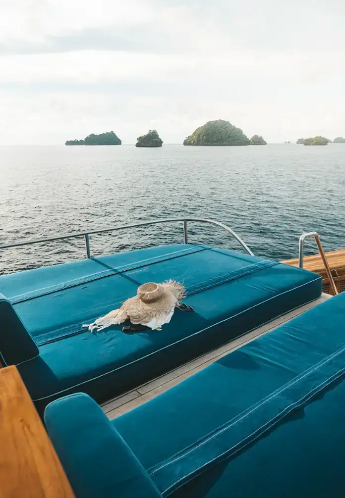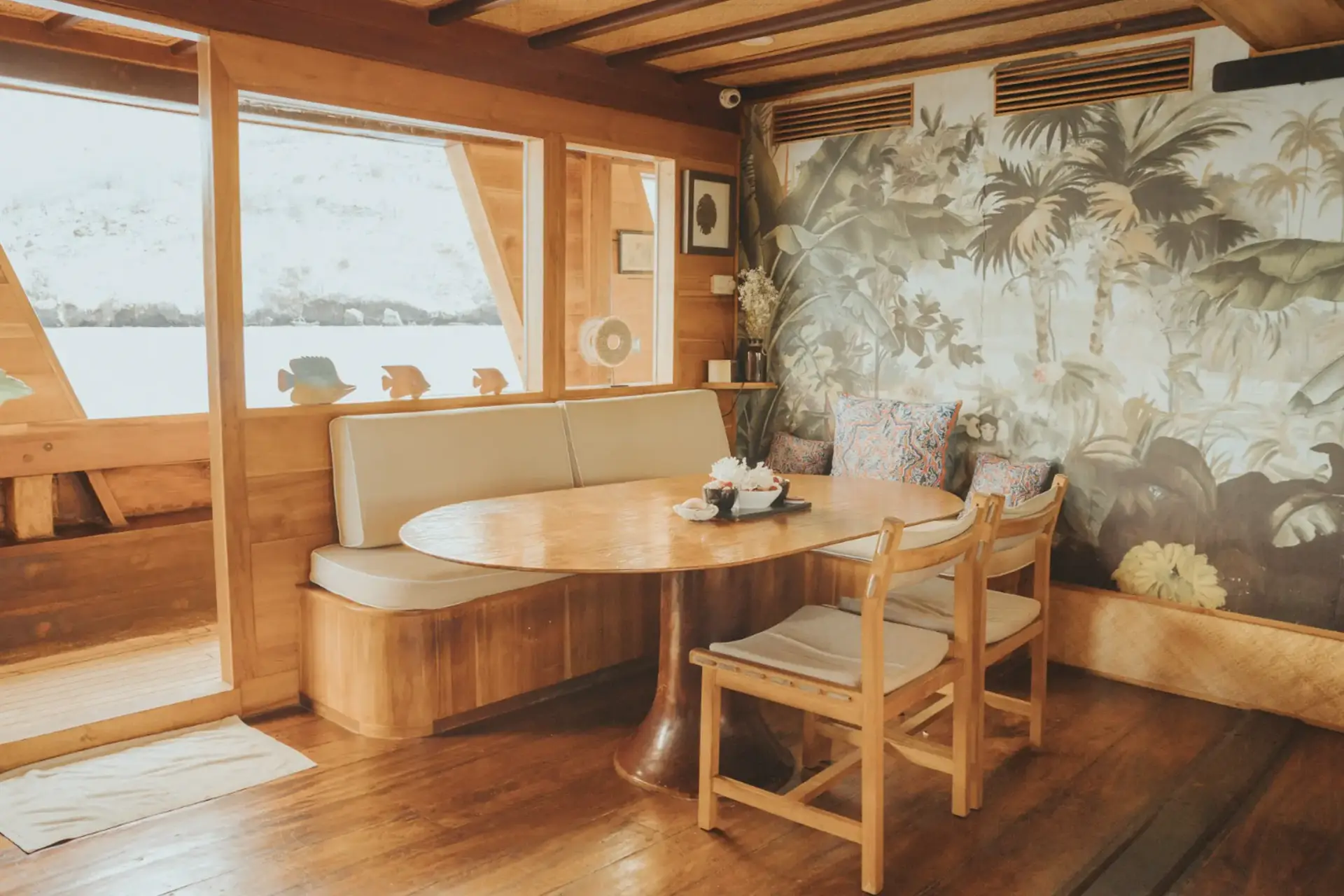 Every detail on board has been thoughtfully curated with love—from English silverware and French wallpapers to Italian lamps—creating a warm and refined atmosphere that makes you feel at home while sailing.