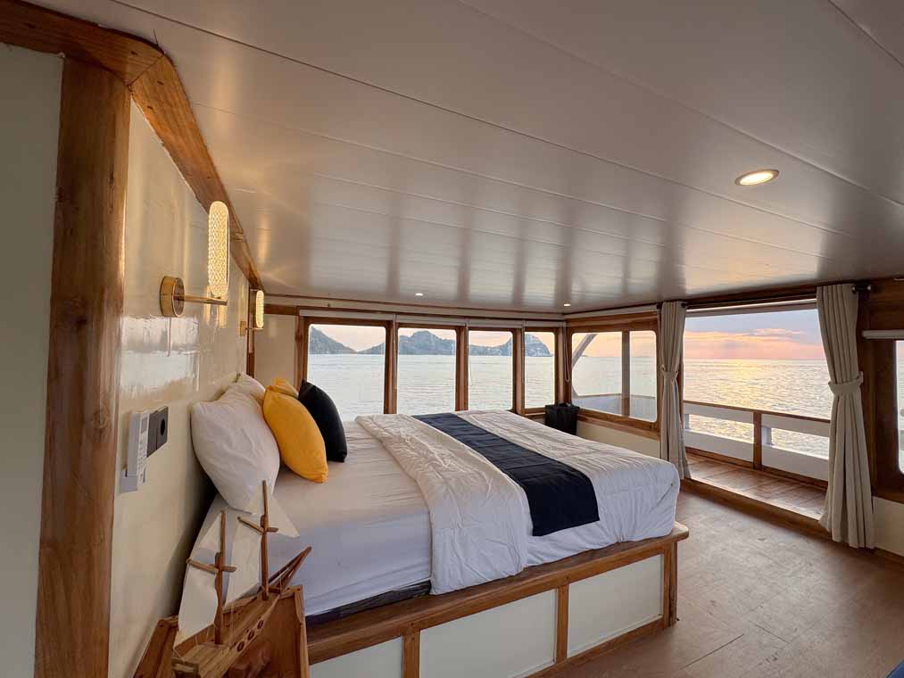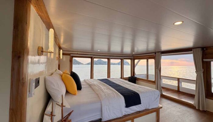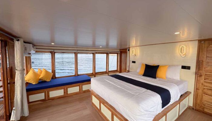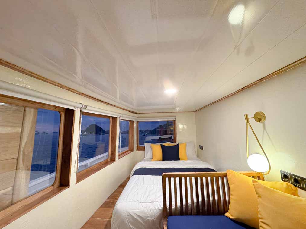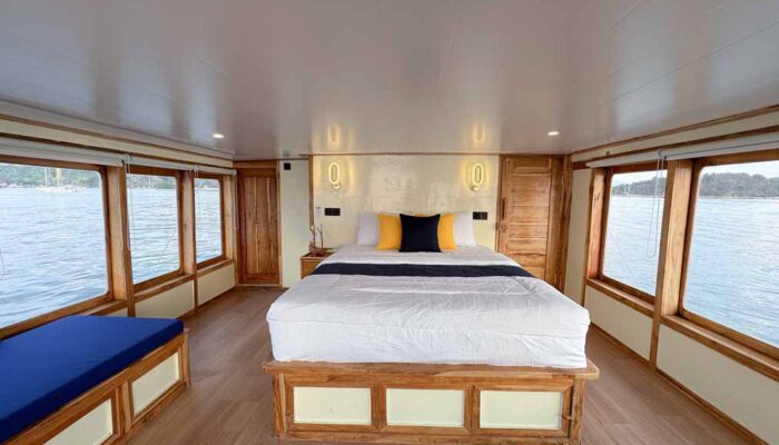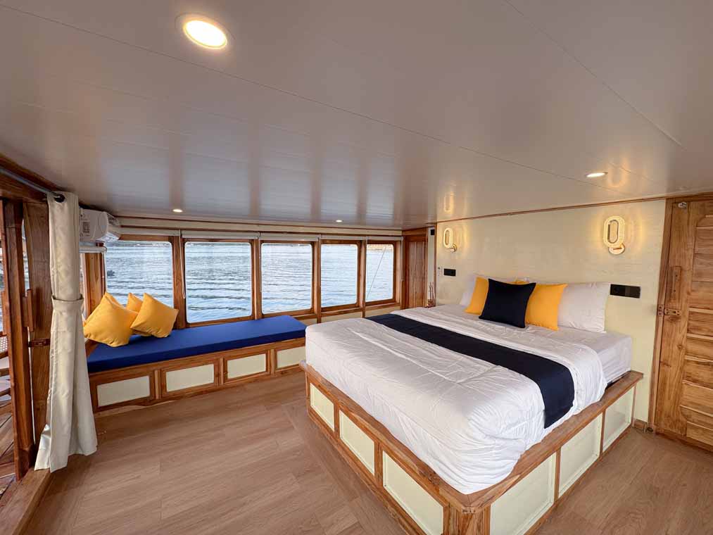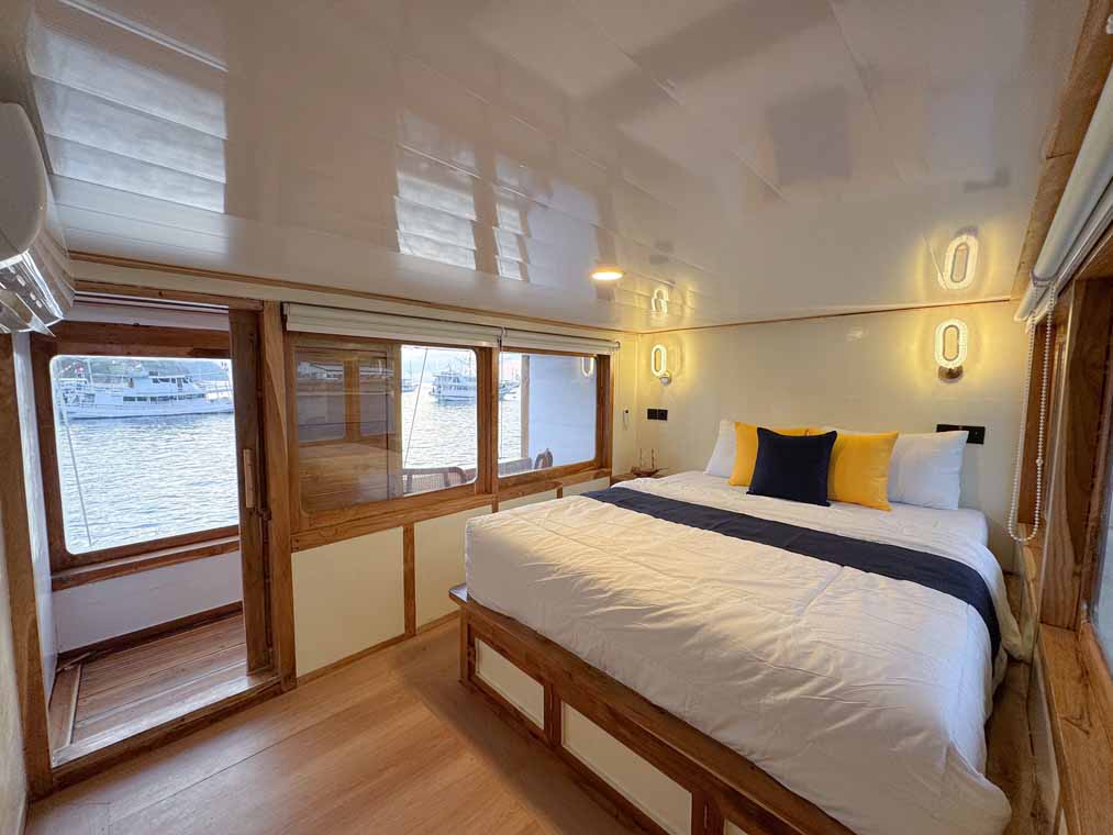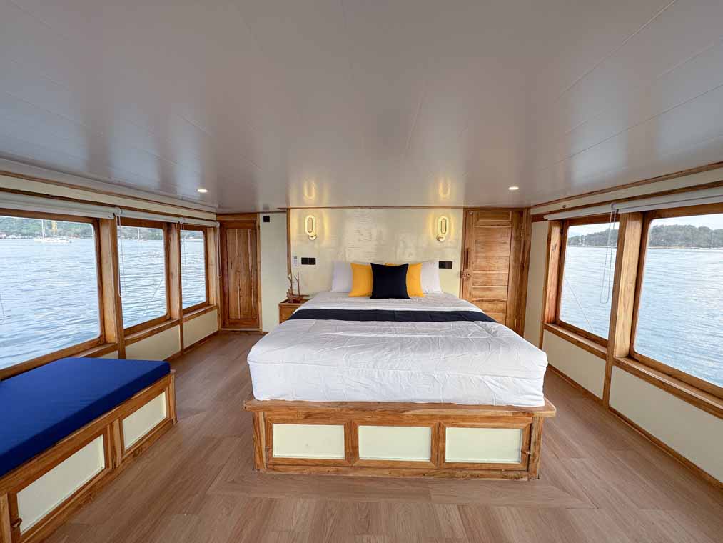 Raja Bintang 1 is a superior-class boat available for Komodo Open Trips 2025 or private charters. The boat features 6 cabins and can accommodate up to 19 guests. Each cabin is equipped with a private bathroom and air conditioning, ensuring a comfortable and relaxing stay on board.