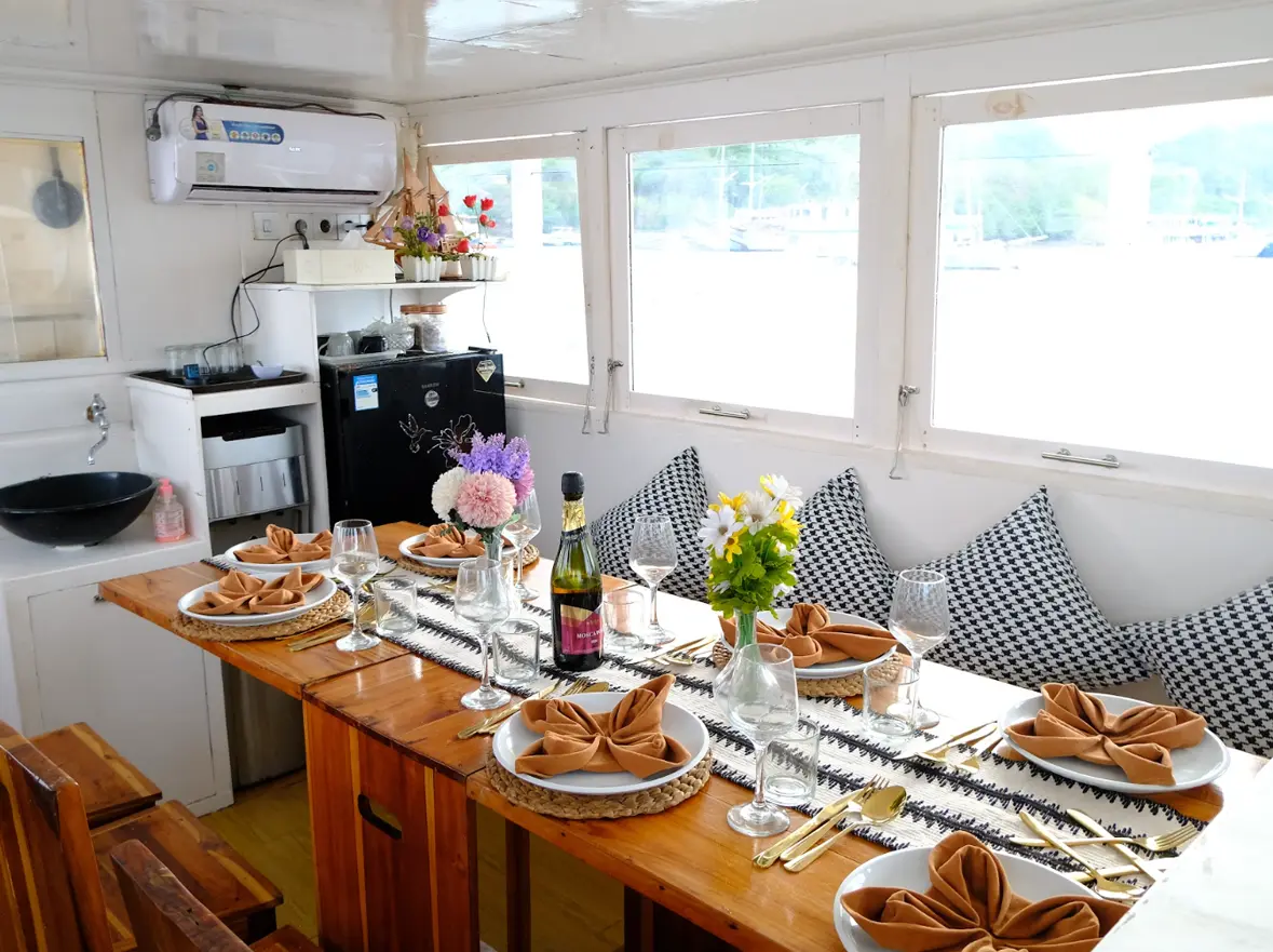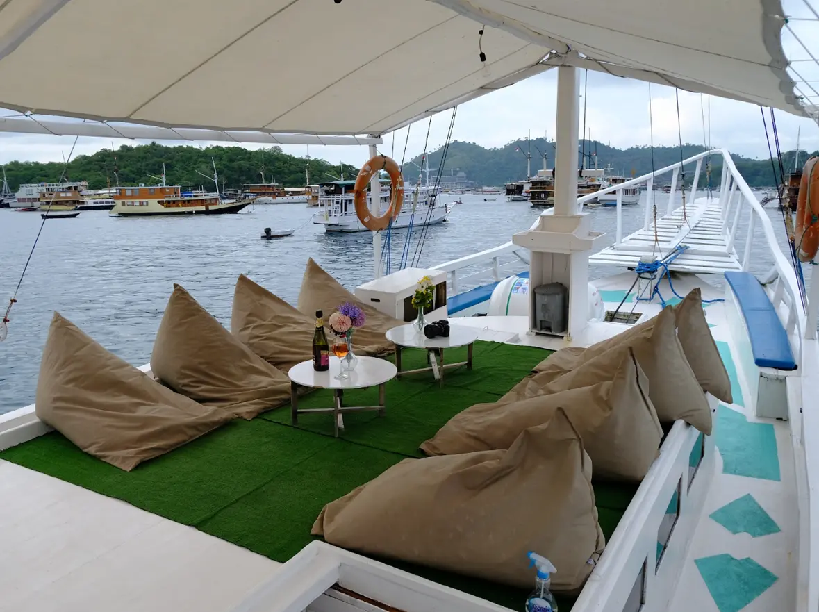 Giona Cruise Liveaboard is a wooden phinisi boat that combines the elegance of traditional Phinisi with modern amenities. This boat welcomes up to 12 guest with 4 comfy cabins. Cruise at a speed of 7-8 knots with our 40 hp Yamaha dinghy. Book your Komodo tour with Giona now and discover the unmatched beauty of Komodo Island from Labuan Bajo.
