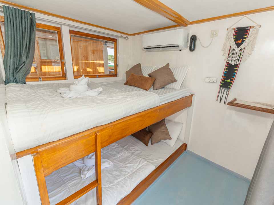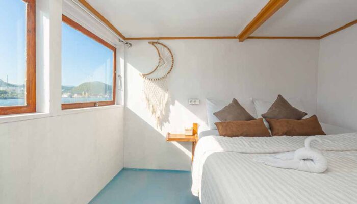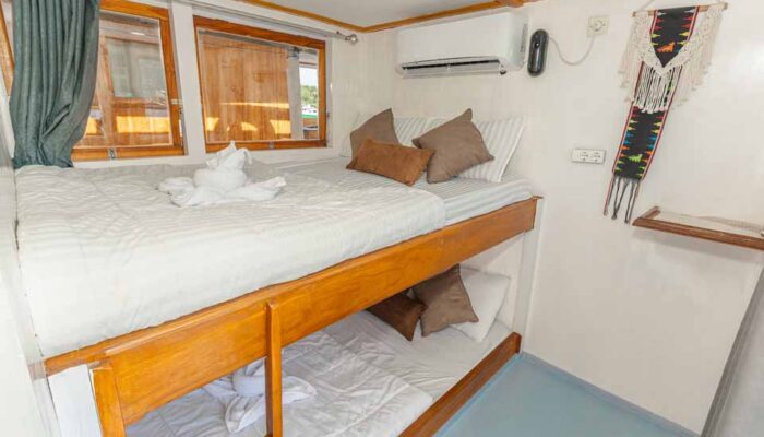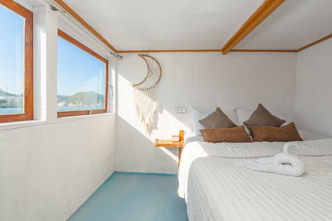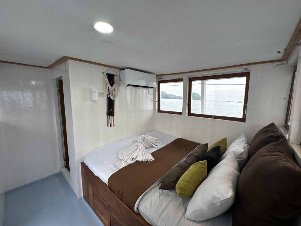 Umami Boat has 5 cabins with a capacity of up to 15 guests. All cabins on Umami Boat are equipped with private bathrooms and air conditioning.